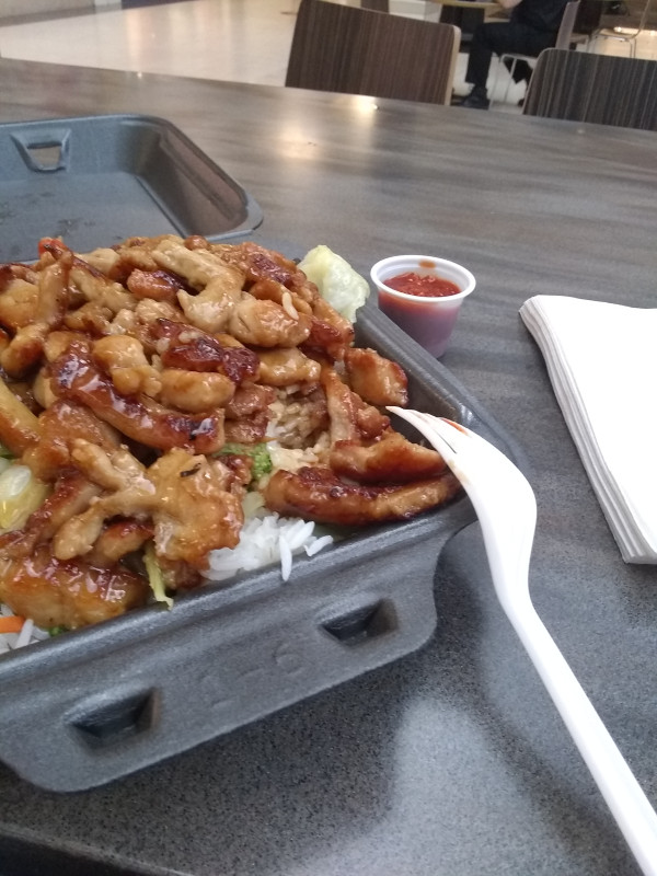 Yo comí Panda Express xD El arroz y la verdura estan abajo de la carne -pollo-