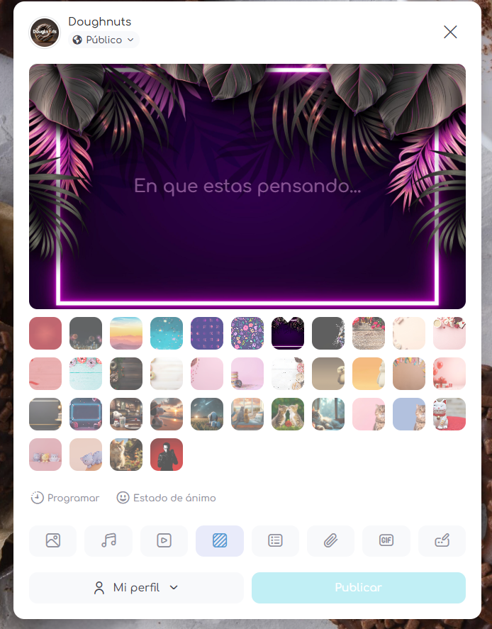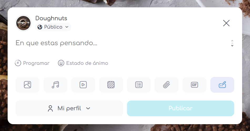 El Post Box es esa caja que contiene todas las opciones para crear y publicar un Post. En Doughnuts se divide en varias opciones a elegir: