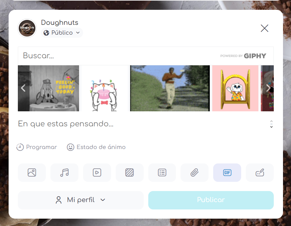 En Post de GIF puedes buscar GIF y postear desde un gif de Giphy