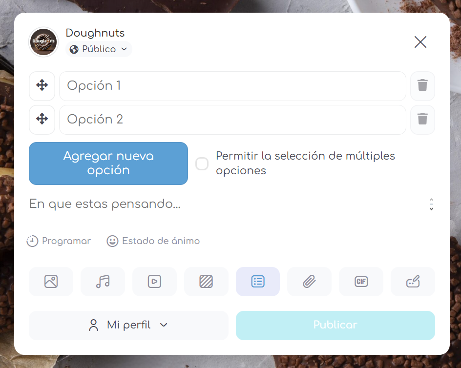En Post de Encuesta creas encuestas con varias opciones y opciones de múltiple voto