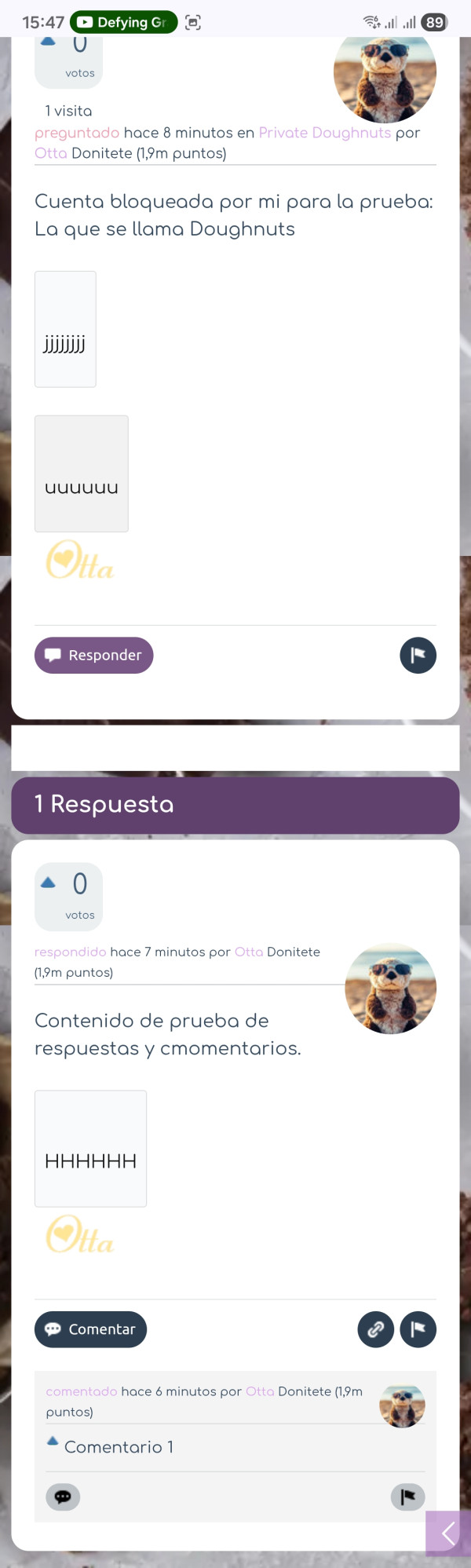 Contenido de prueba de respuestas y cmomentarios.