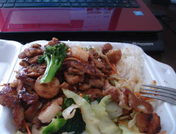 Mi favorito es arroz blanco con pollo en teriyaki sauce y verduras